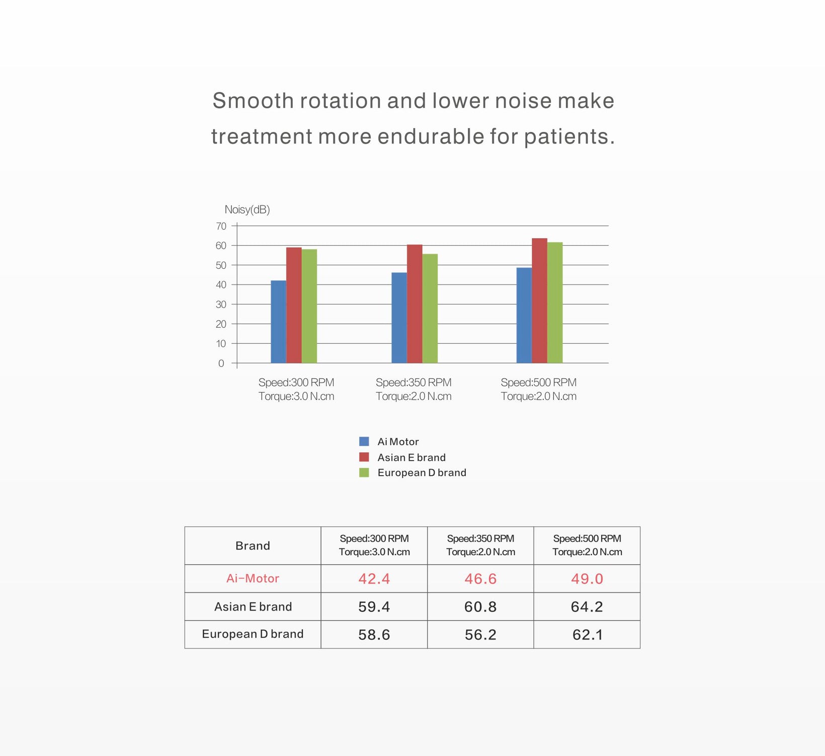 • Smooth rotation and lower noise make treatment more comfortable and relaxing for patients