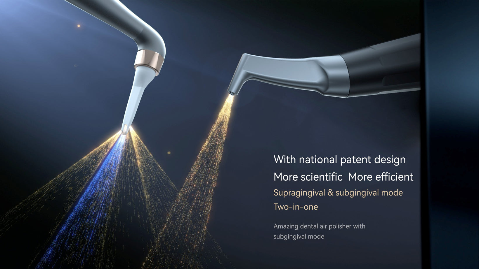 - National Patent Design: More scientific and efficient, with supragingival and subgingival modes. The air polisher offers both modes in one device.